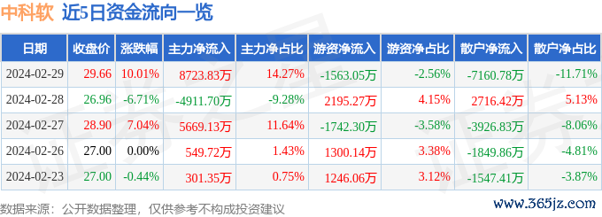 2月29日的资金流向数据方面,主力资金净流入8723.83万元,占总成交额14.27%,游资资金净流出1563.05万元,占总成交额2.56%,散户资金净流出7160.78万元,占总成交额11.71%。