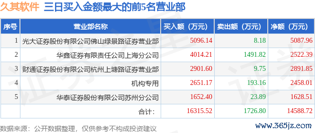 沪深交易所2023年8月22日公布的交易公开信息显示,久其软件(002279)因连续三个交易日内,涨幅偏离值累计达到20%的证券登上龙虎榜。此次是近5个交易日内第1次上榜。